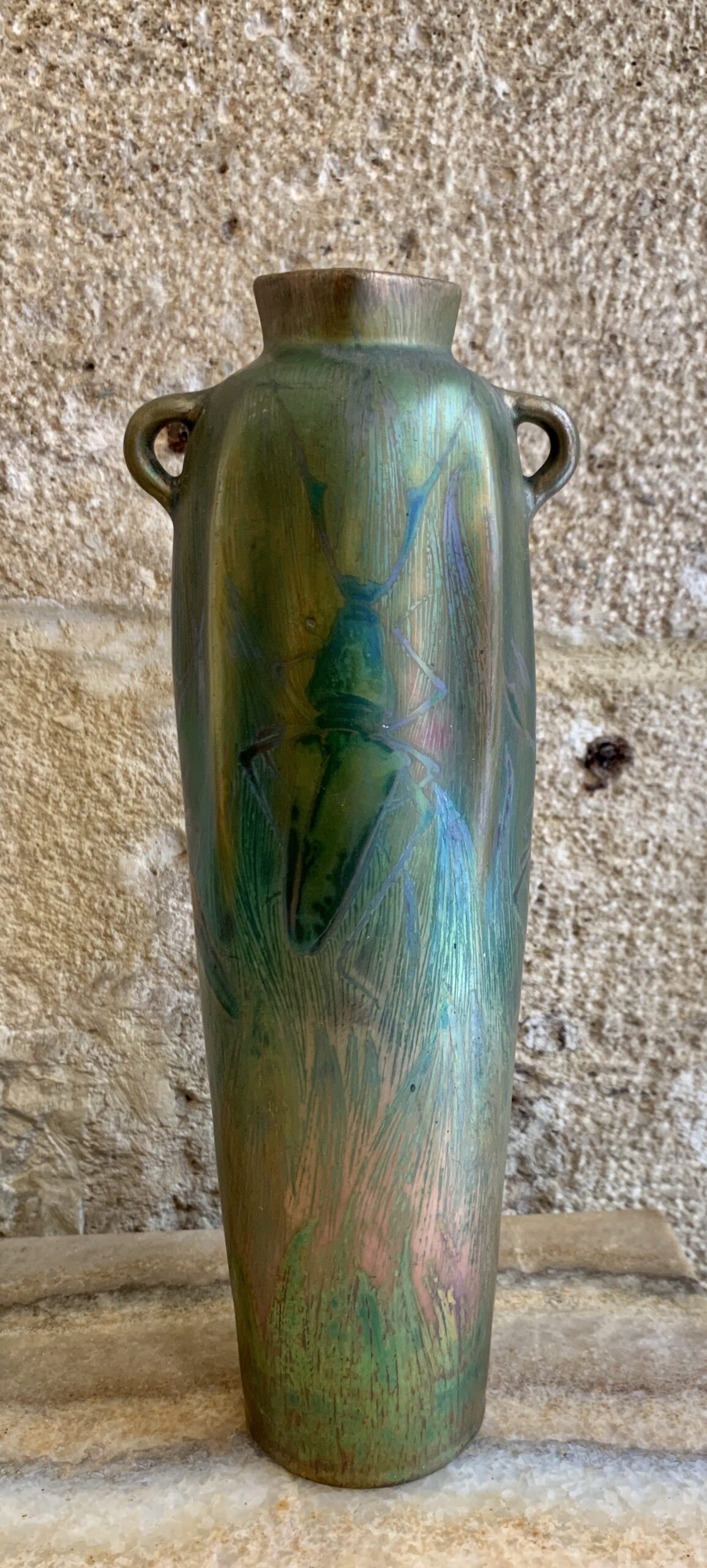 Clément Massier (1844-1917), iridescent beetle vase with 2 handles, 27cm high, circa 1900 “Sold”