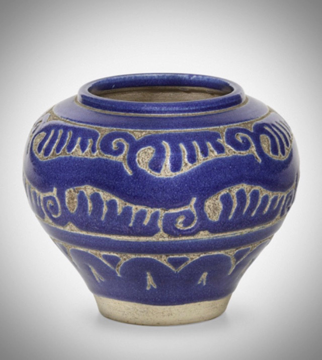 Ernest Chaplet (1835-1909), stoneware blue vase, 10,5cm high, circa 1900
