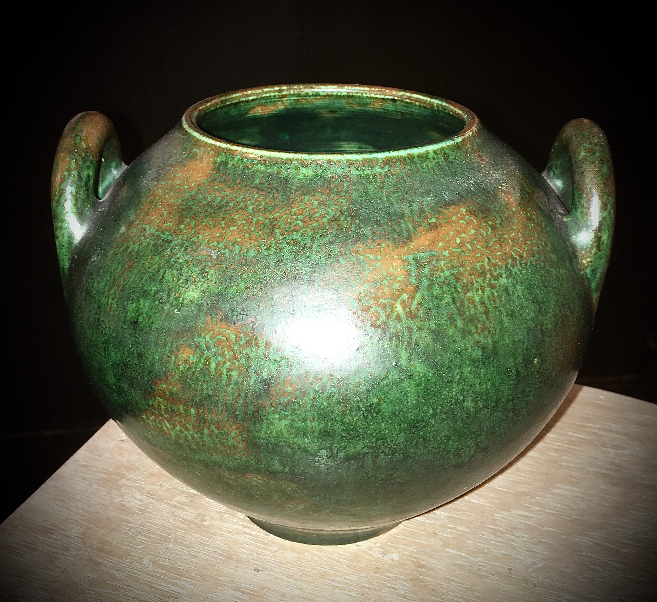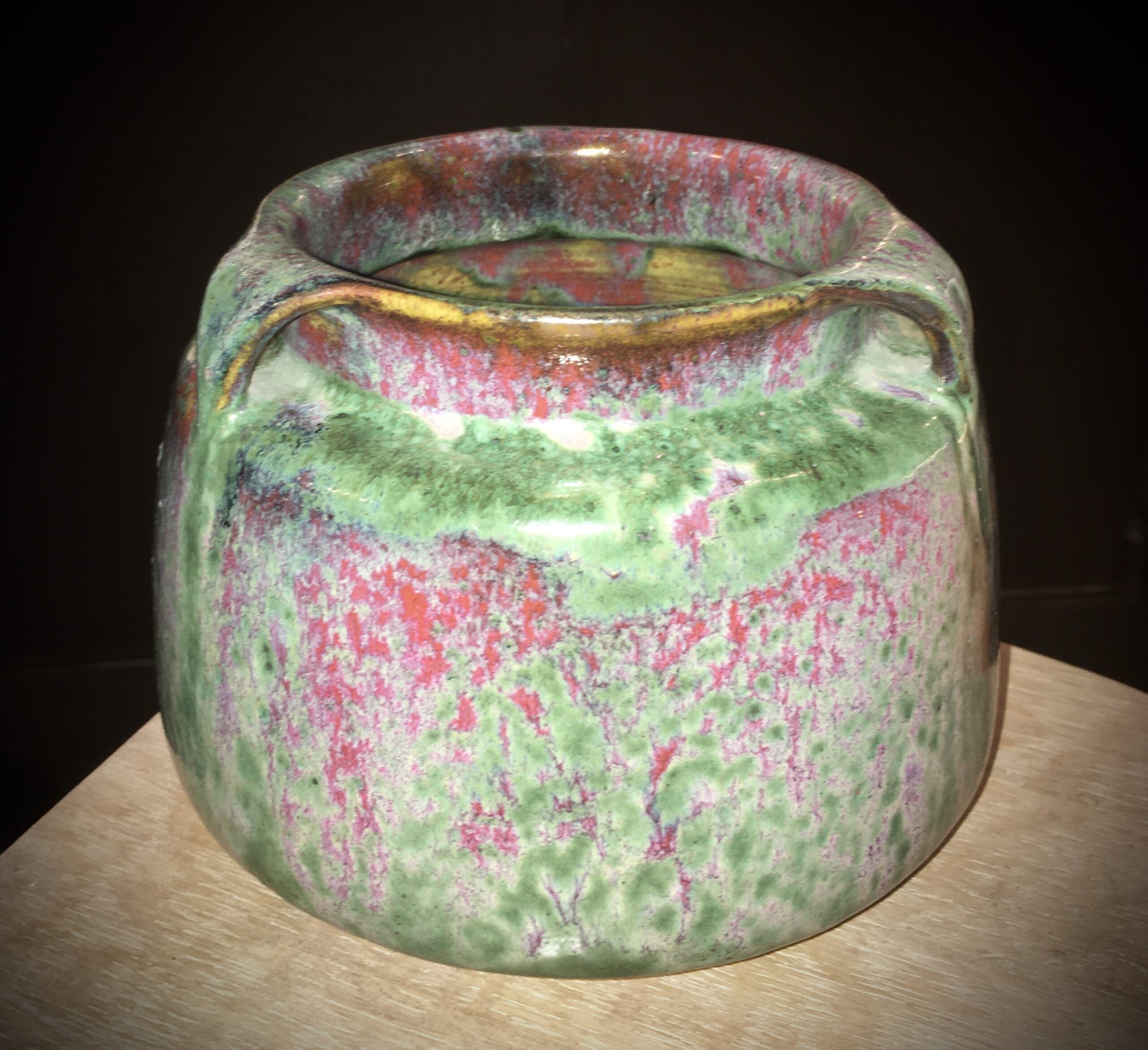 Henri Simmen (1880-1967), green & oxblood sandstone vase, 15cm high by 18cm of diameter, circa 1920