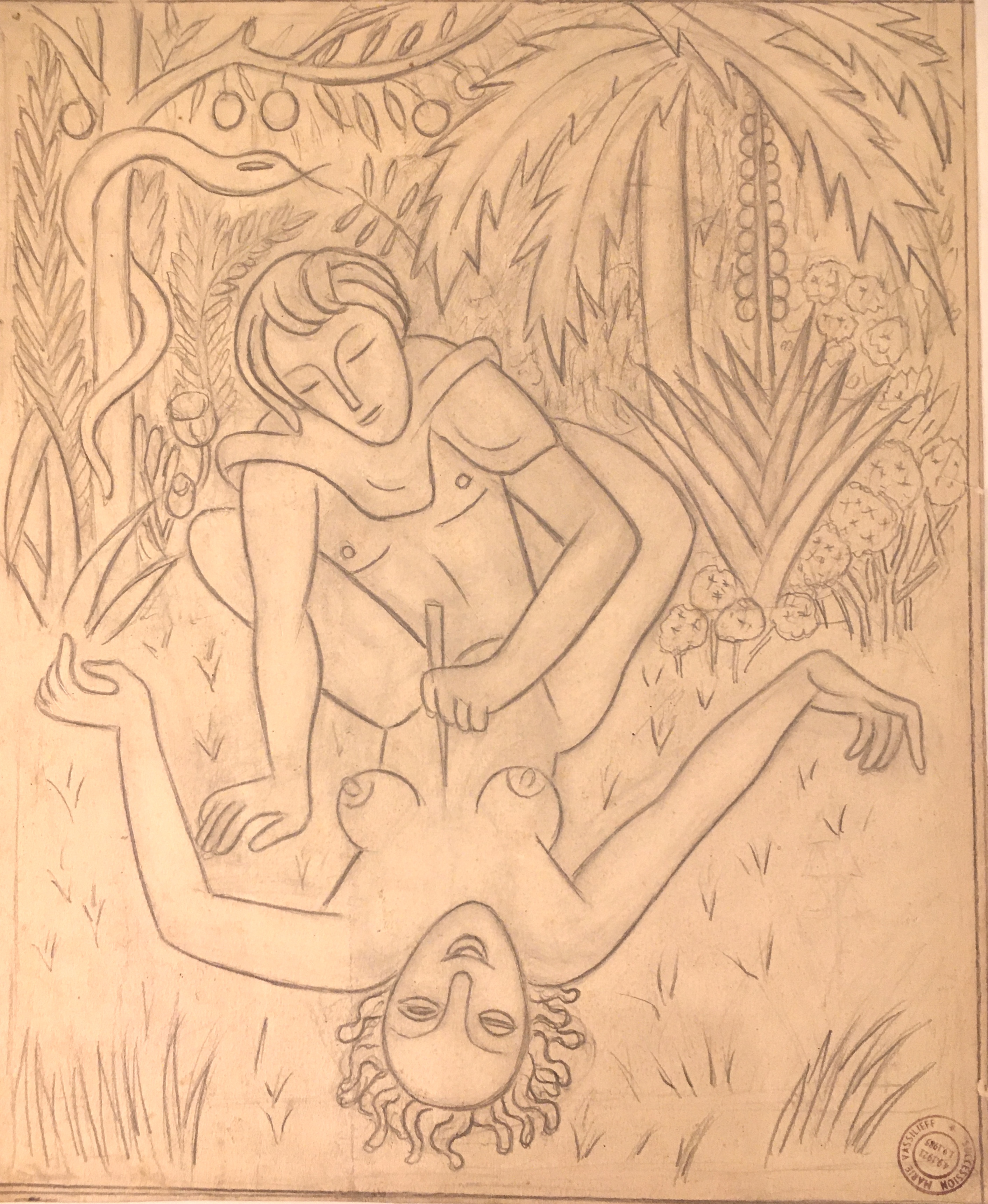 Marie Vassilieff (1884-1957), Adam & Eve, drawing on paper, circa 1930