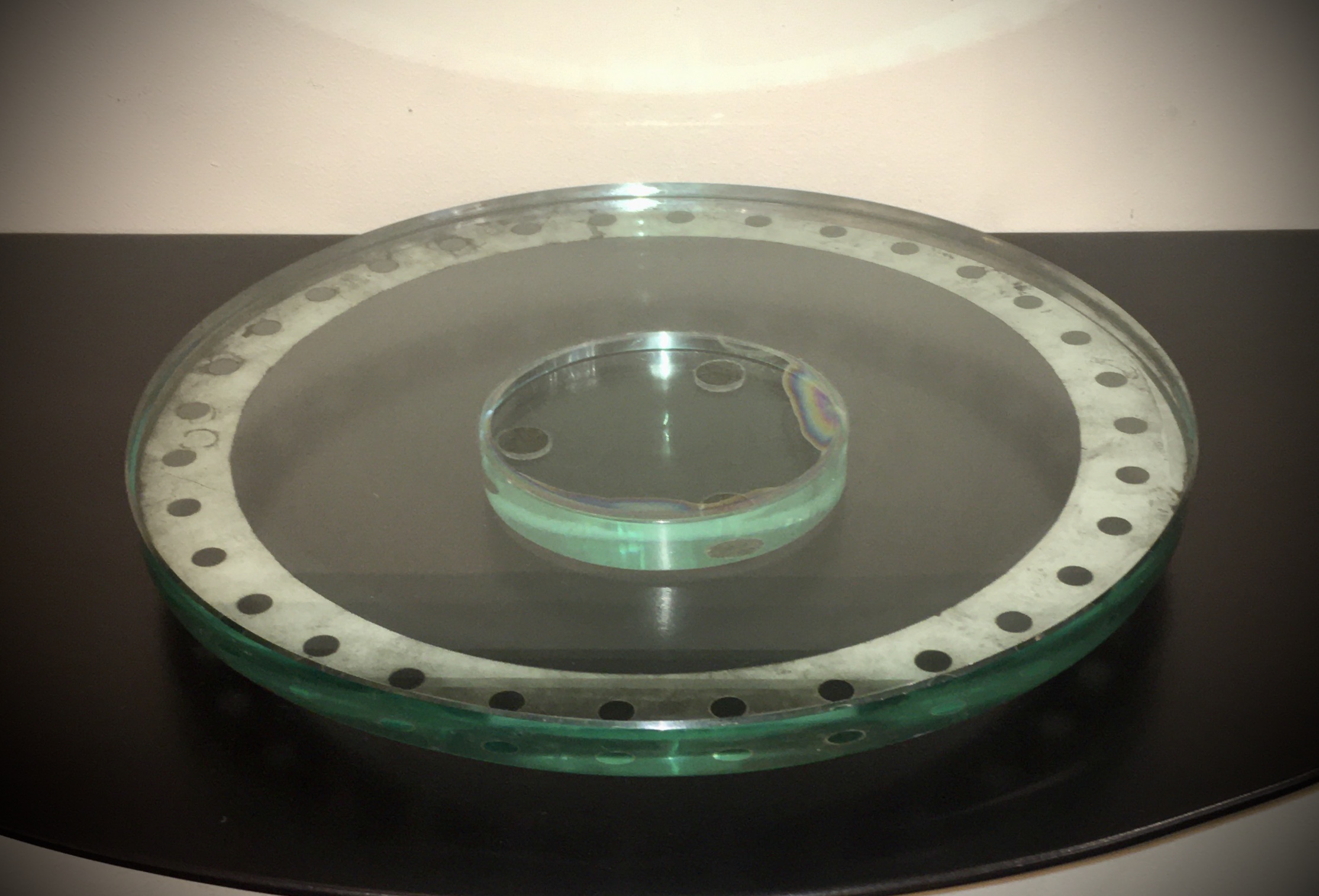 Eglomized glass slab, 33cm of diameter, 2cm thick, circa 1950