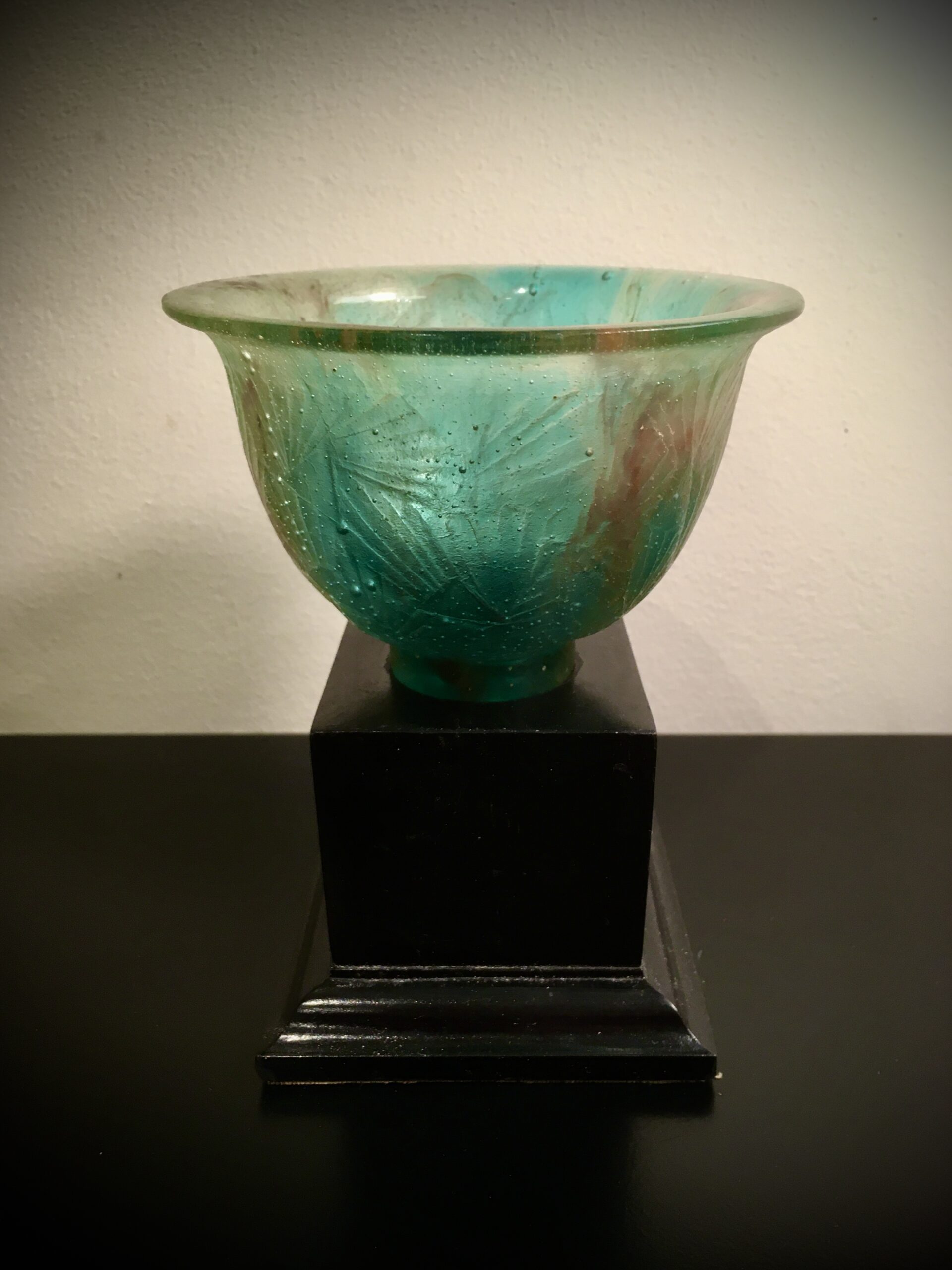 François Emile Décorchemont (1880-1971), green & brown molten glass, 7,5cm high, circa 1930
