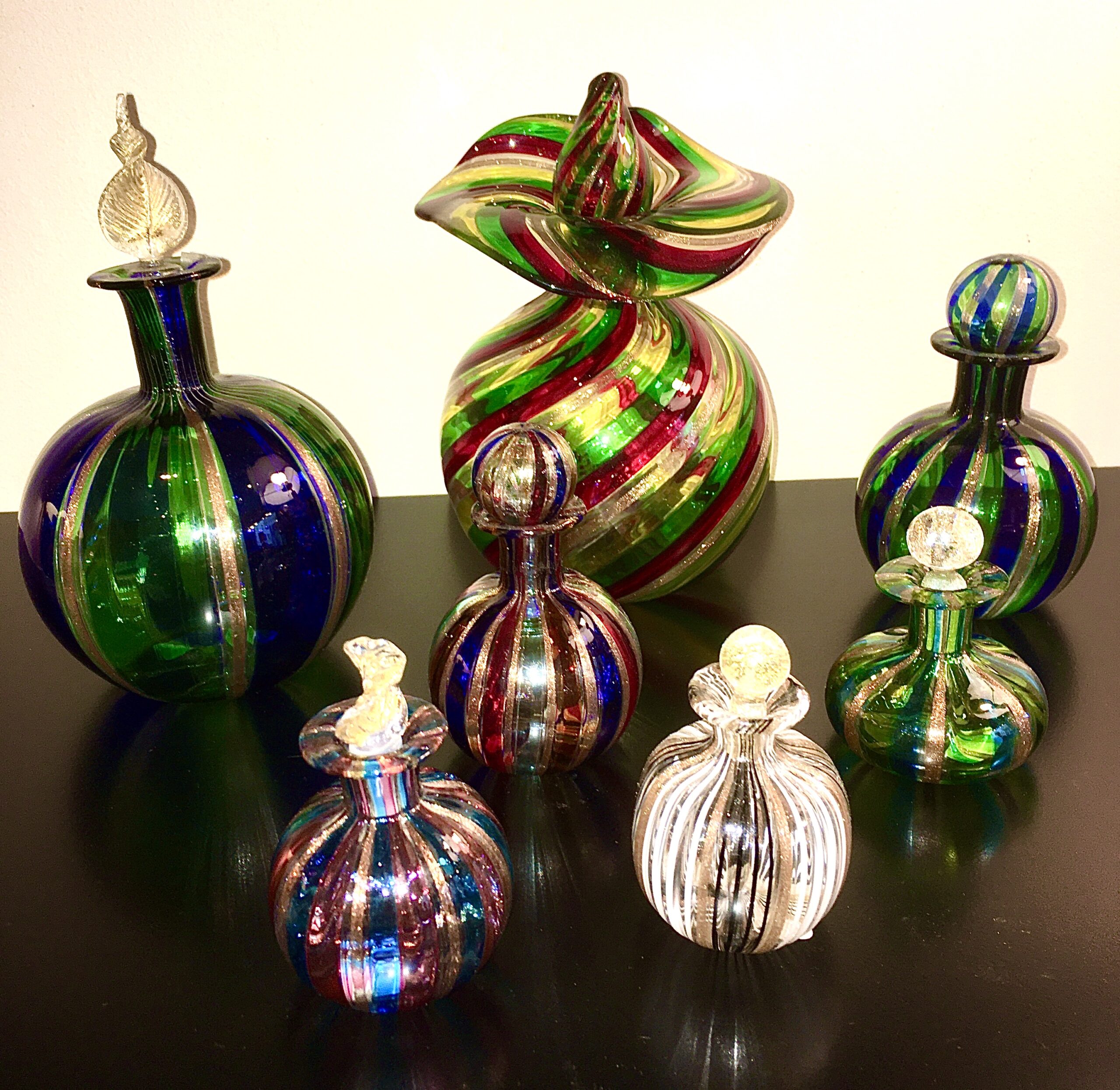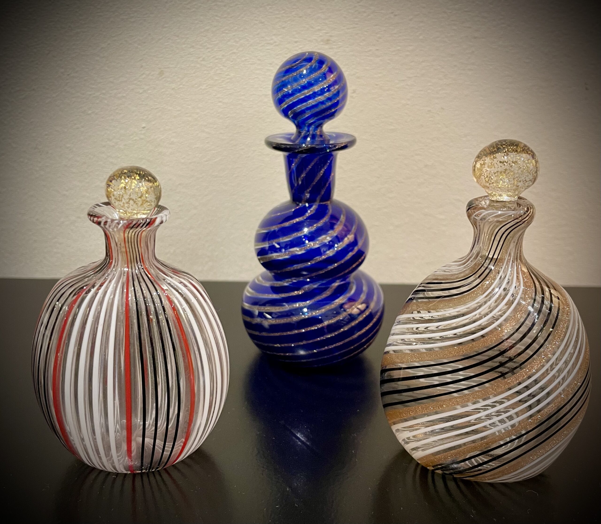 Murano perfume flasks, glassware, circa 1960