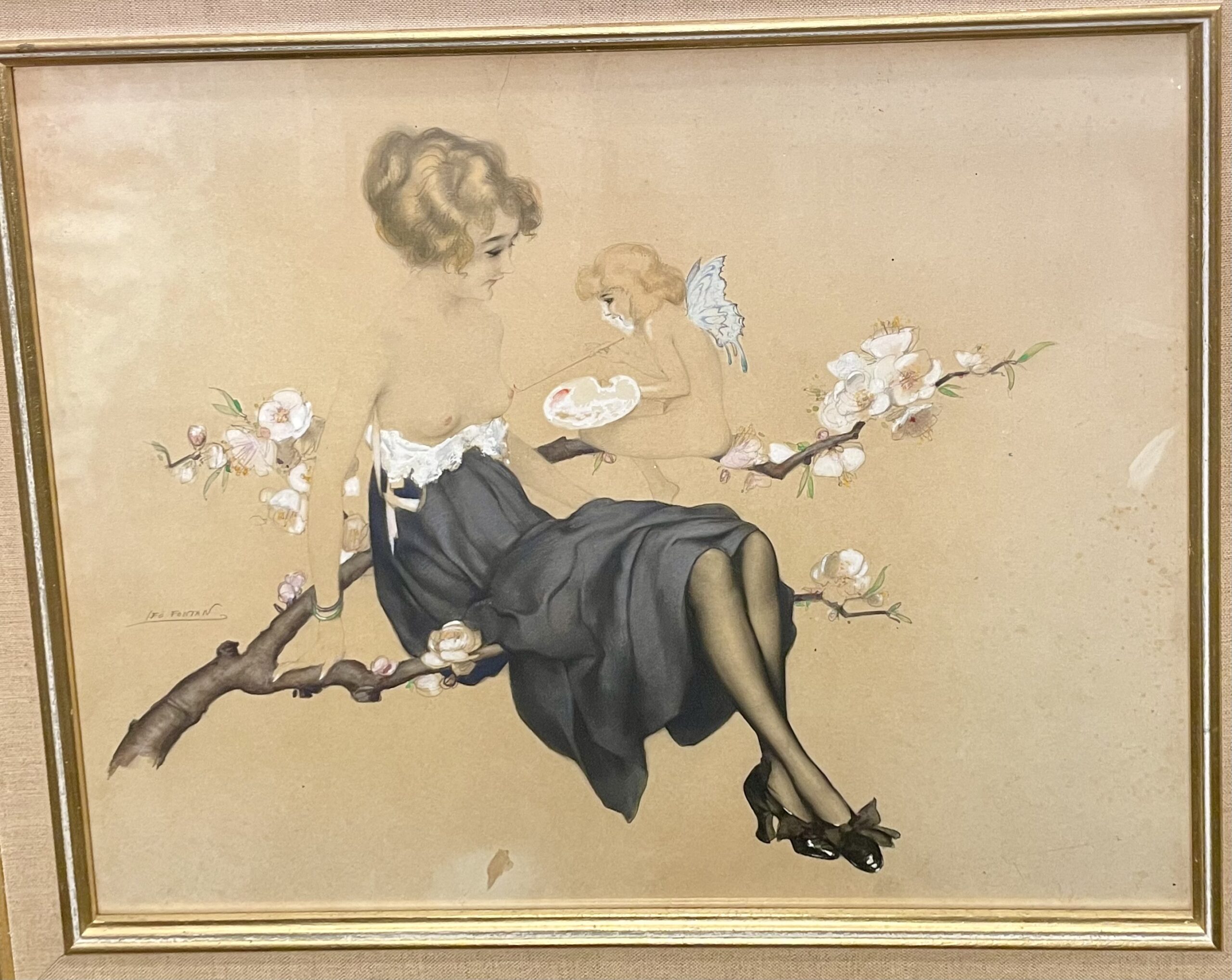 Leo Fontan (1884-1965), drawing, woman with an angel, circa 1900
