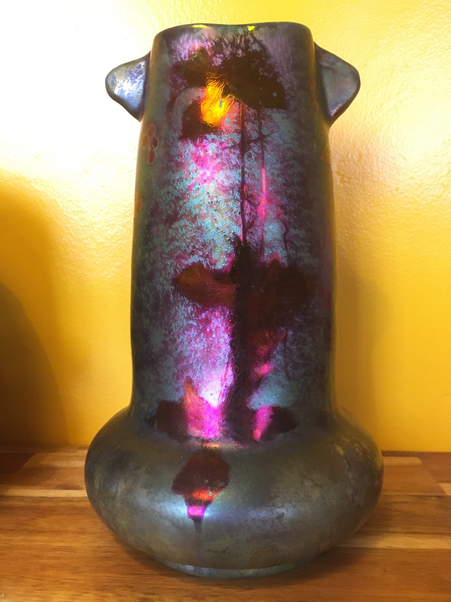 - Keller & Guérin, Lunéville, iridescent ceramic, 20,5cm high, circa 1900