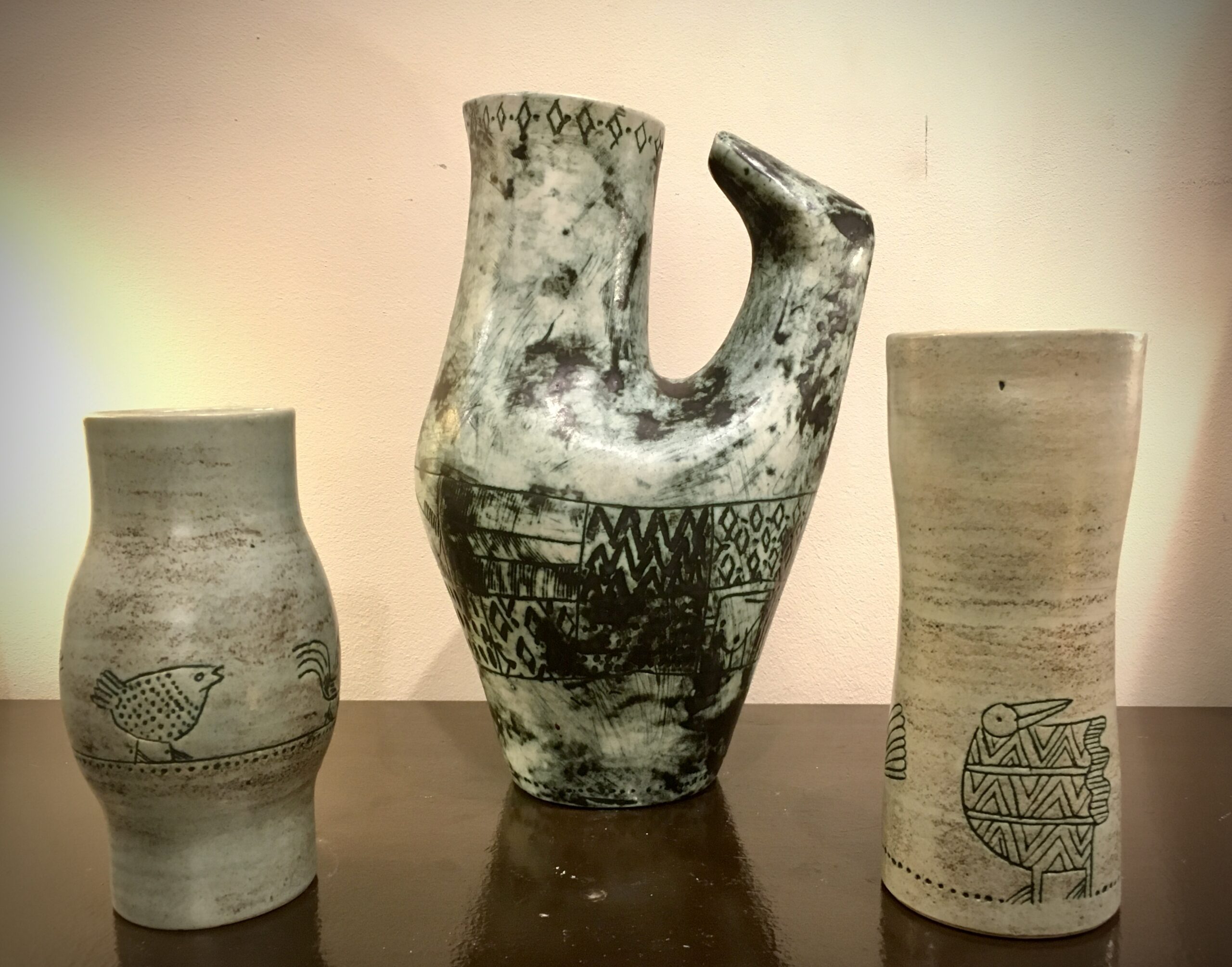 - Jacques Blin (1920-1995), ceramic pitcher & vases, 33cm high, circa 1950