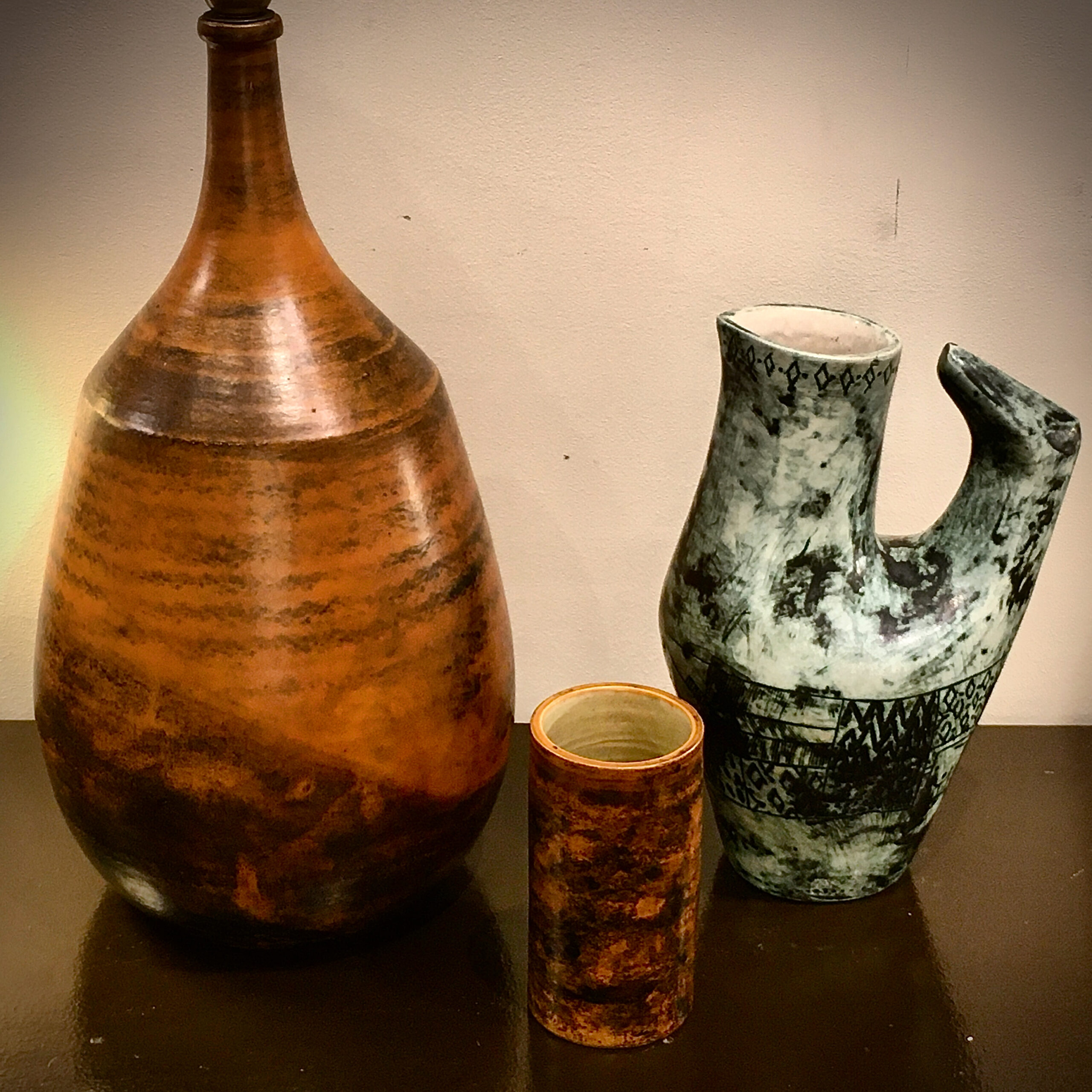 - Jacques Blin (1920-1995), ceramic lamp, pitcher & vase, 48, 33 & 16cm high, circa 1950
