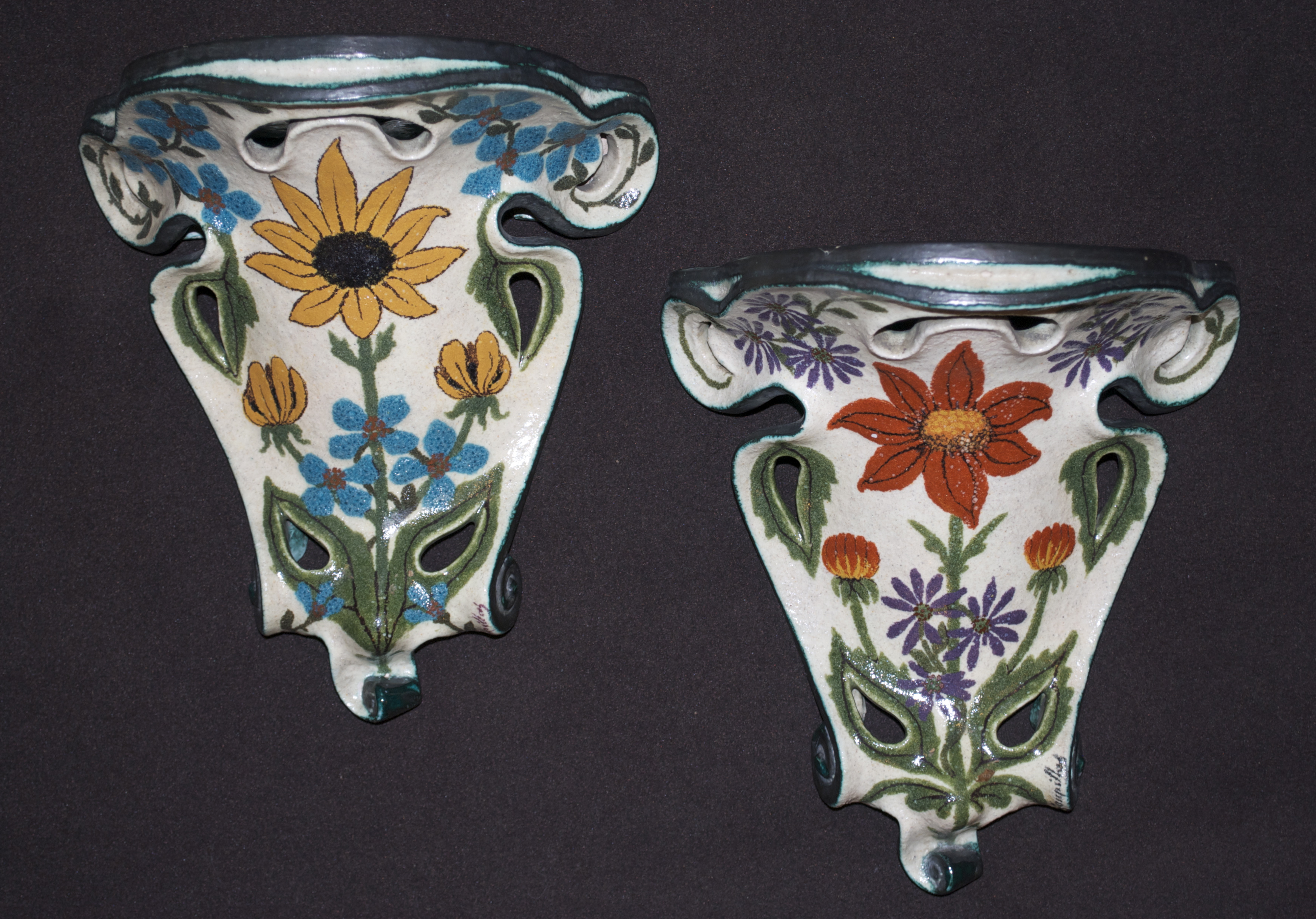 - Alcide Chaumeil & Henry Gaupillat, ceramic wall shelves, 22x22cm high, circa 1900