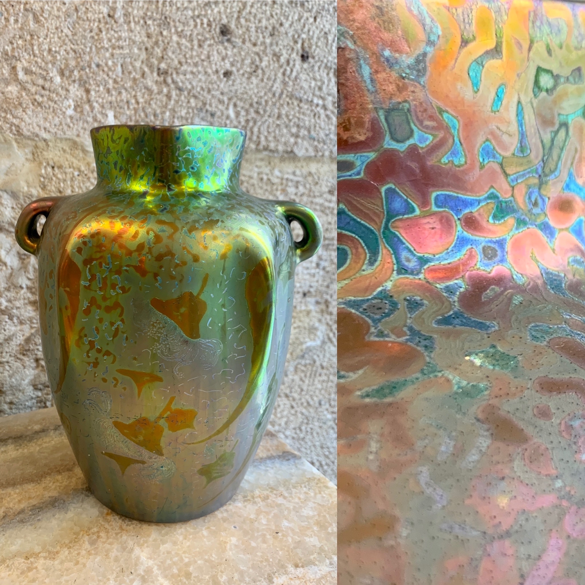 - Keller & Guérin, Lunéville, iridescent ceramic, 20,5cm high, circa 1900