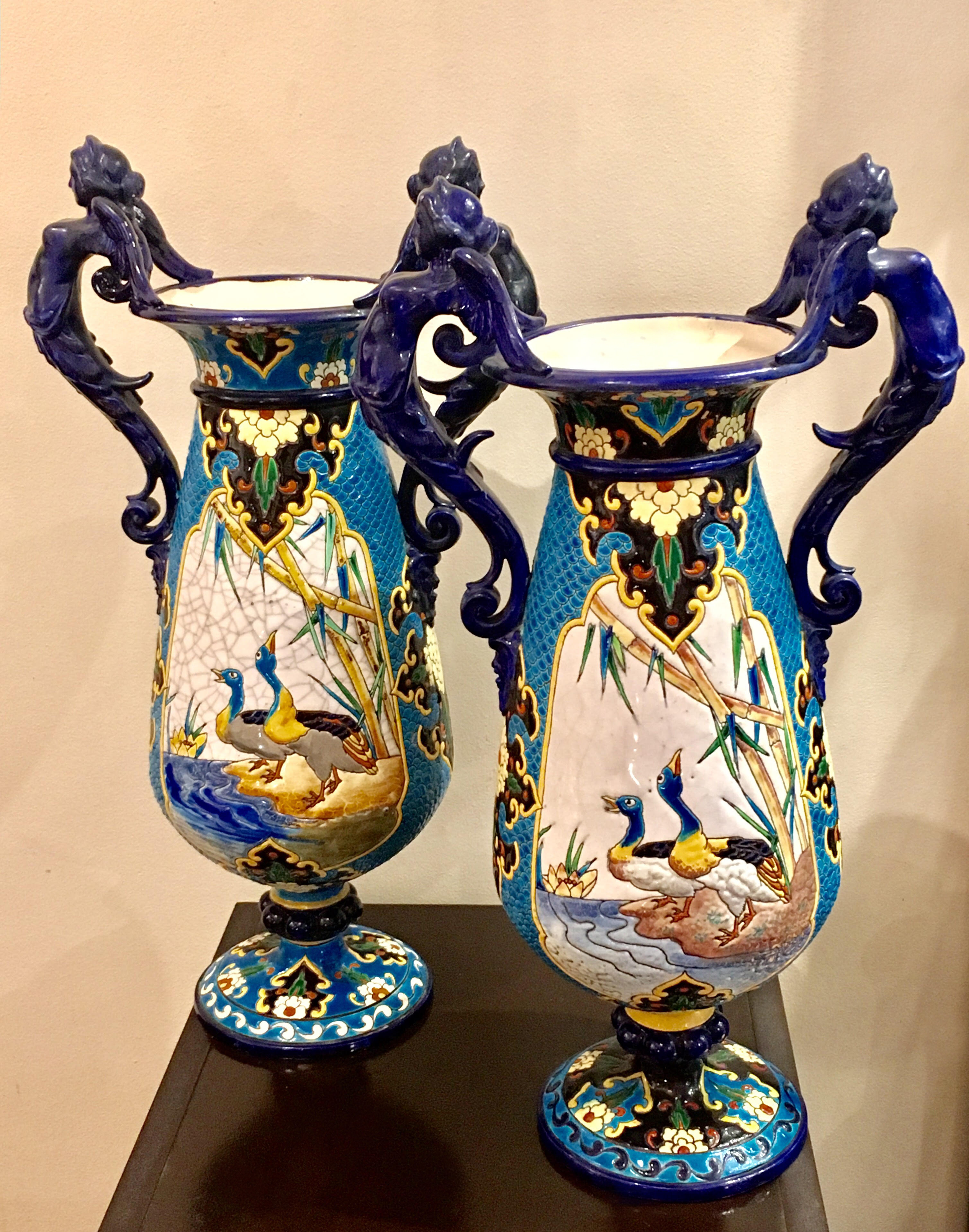 - Jules Vieillard Bordeaux (1845-1868), pair of ceramic vases with naiads, 47cm high, circa 1860