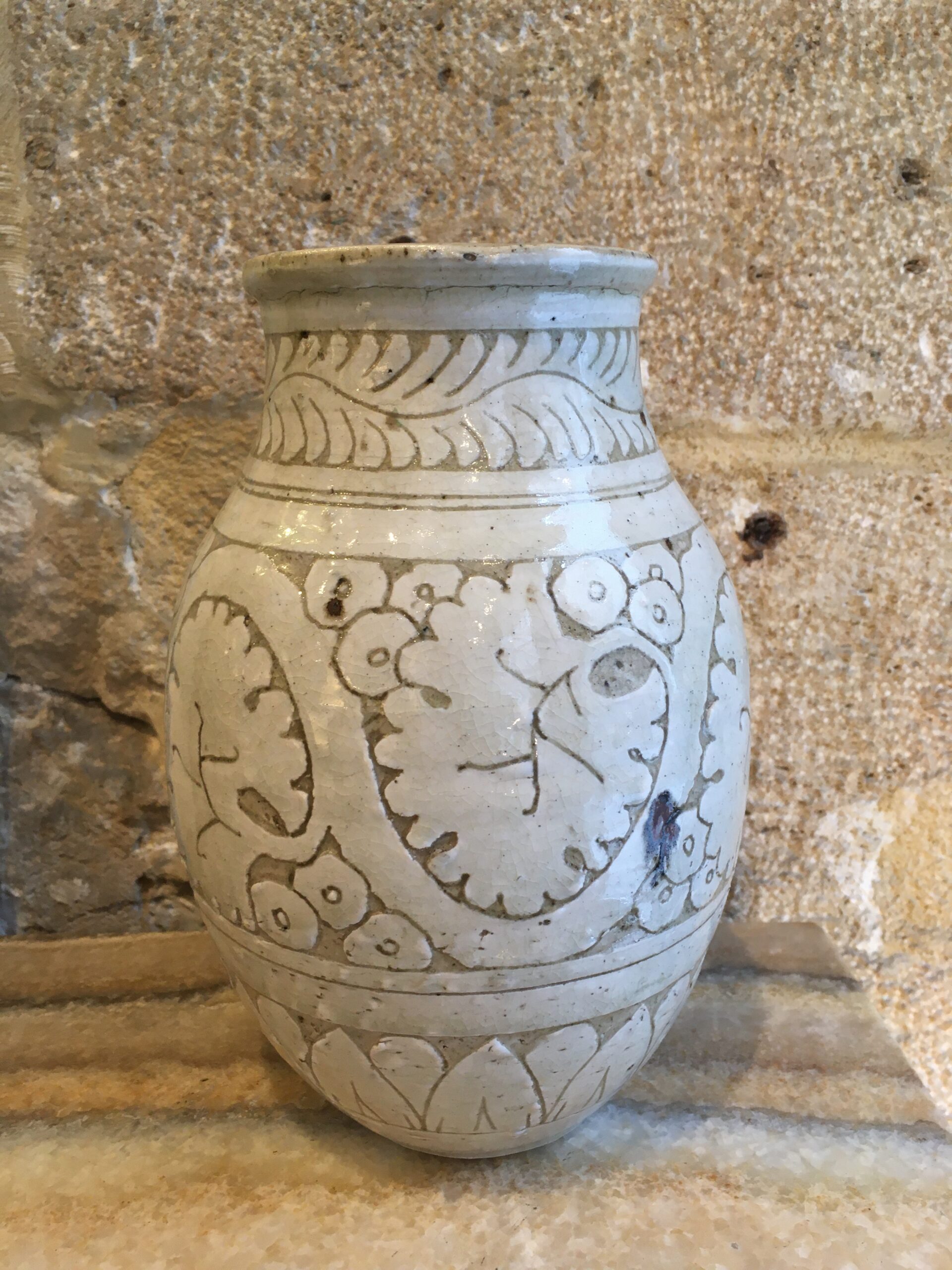 Emile Lenoble (1875-1939), Art Déco geometric white stoneware vase, 23cm high, circa 1925