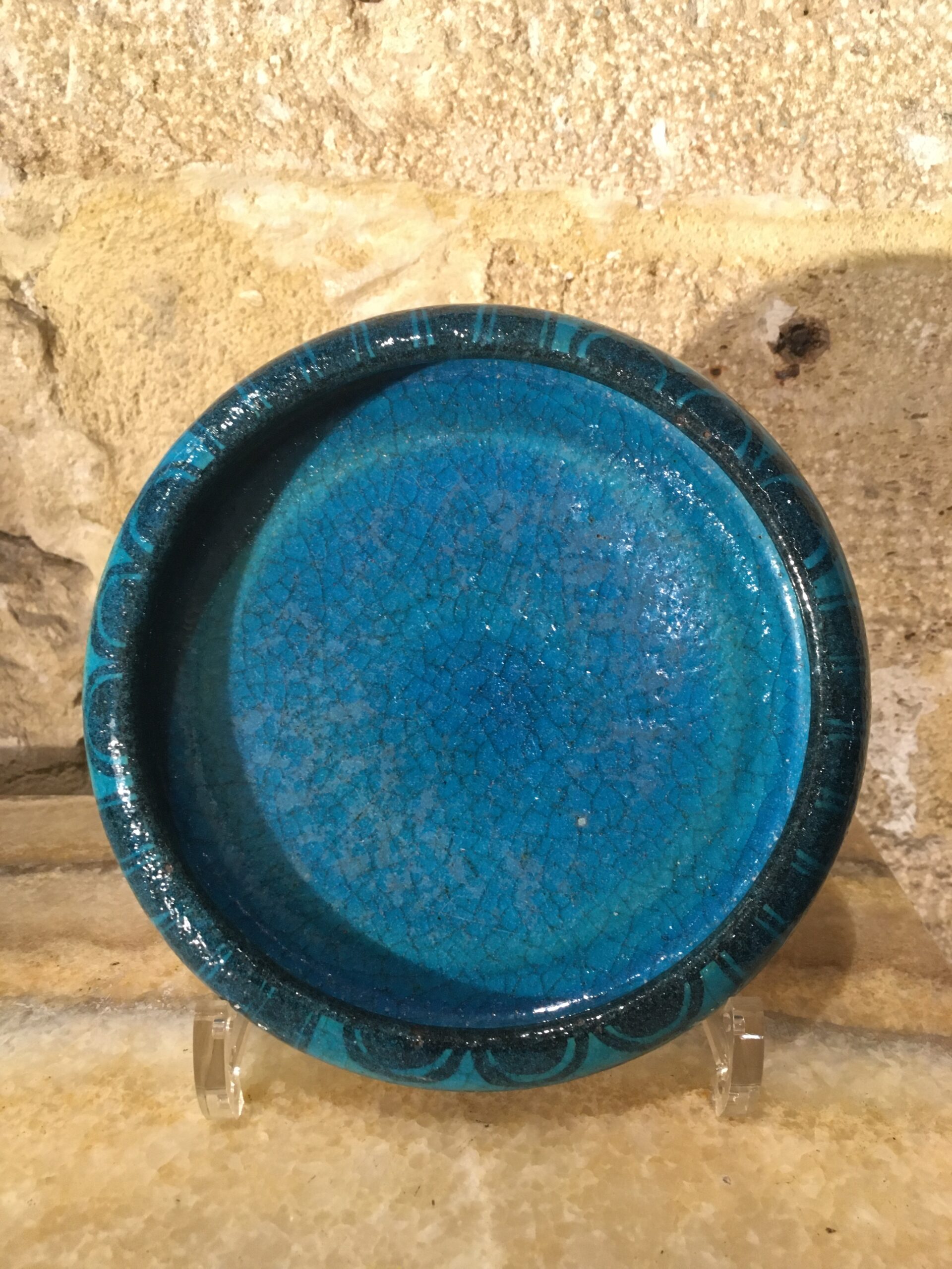 Emile Lenoble (1876-1939), Egyptian blue charger, 2,5cm high by 16cm of diameter, circa 1920
