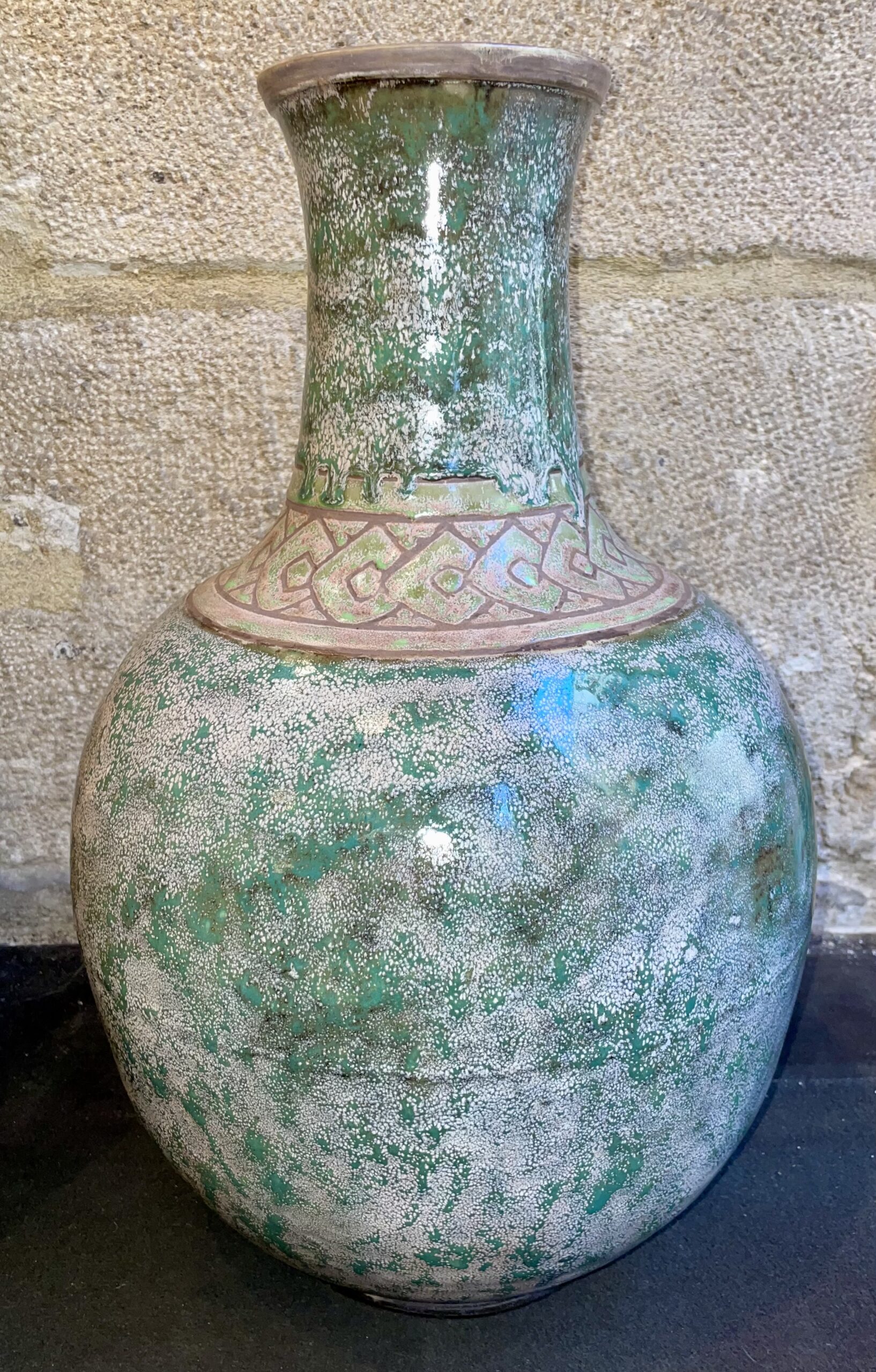 Georges Serré (1889 – 1956), huge geometrical sandstone vase, 54cm high, circa 1930