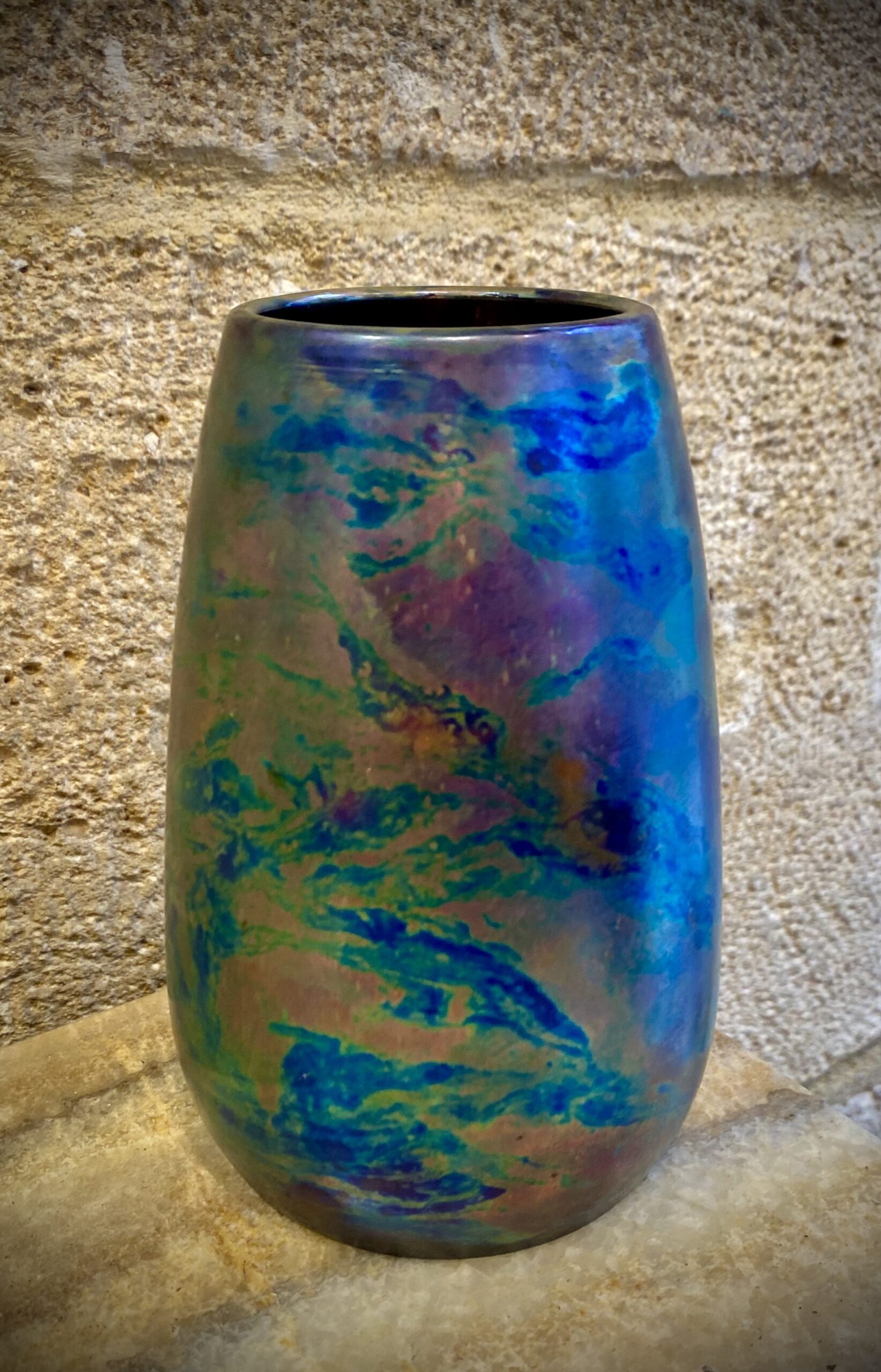 Keller & Guérin, Lunéville, iridescent ceramic, 20,5cm high, circa 1900