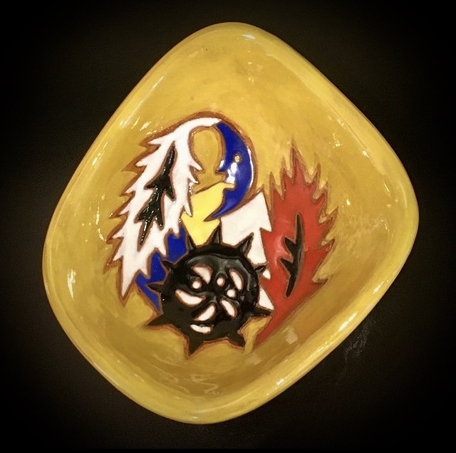 - Jean Lurçat (1892-1966), sunny ceramic cup, signed, 16,5cm by 6cm high, circa 1950